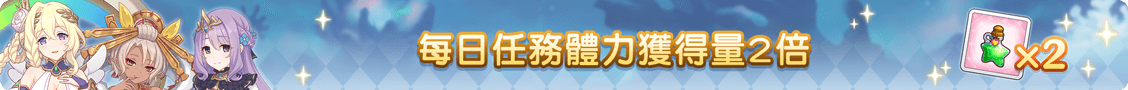 達成「每日任務」時可獲得的體力變為2倍。