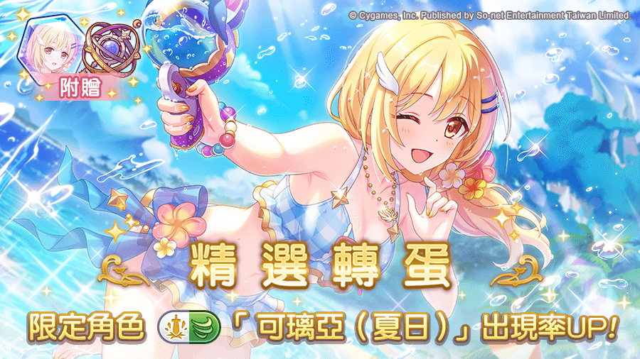 2. 「可璃亞(夏日)」有機會出現在限定新手衝刺轉蛋中。
