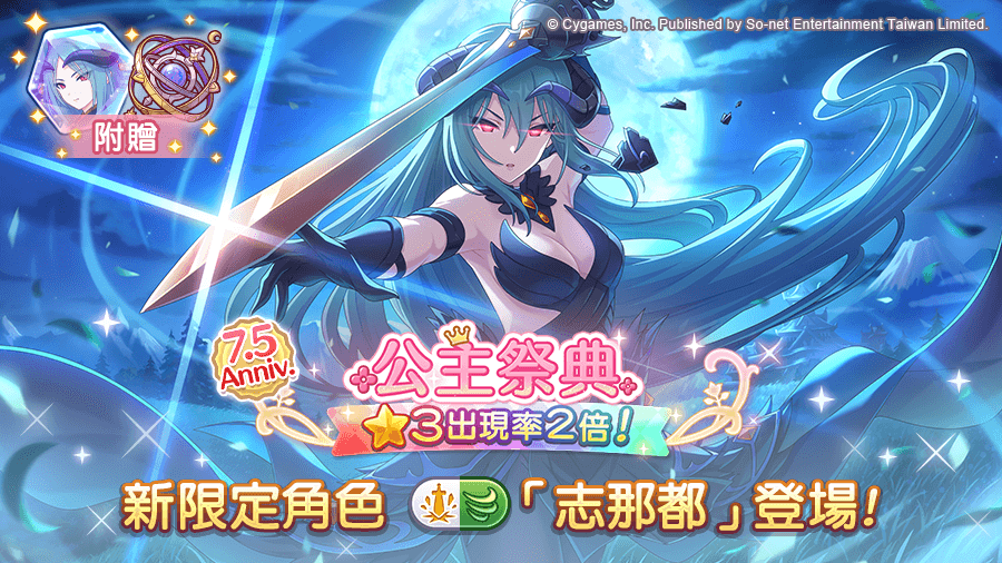 ※包含「志那都」在內,「公主祭典限定角色」會於上述的公主祭典轉蛋舉辦期間中,出現在公主祭典轉蛋、限定新手衝刺轉蛋中。