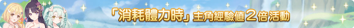 通關主線冒險、聖跡調查冒險、神殿調查冒險、支線劇情、深域冒險、活動冒險、復刻活動冒險時,可獲得的主角EXP獲得量將變為平常的2倍!