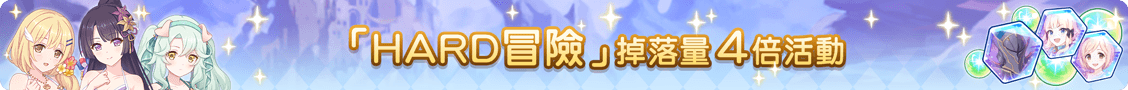通關主線冒險(HARD)時可獲得的記憶碎片、裝備道具和瑪那等的獲得量將變為平常的4倍!