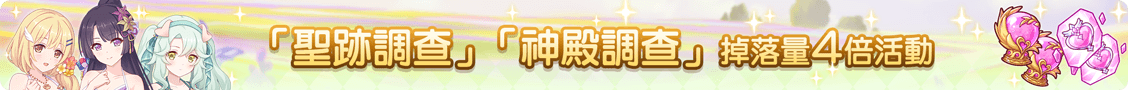 通關聖跡調查冒險、神殿調查冒險時可獲得的獎勵獲得量將變為平常的4倍!