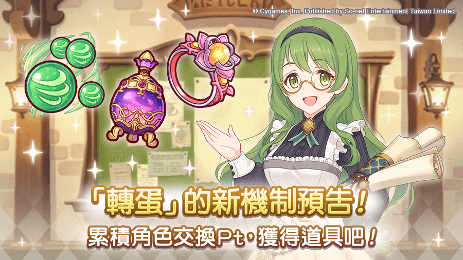 在轉蛋獲得的「角色交換Pt」持有數達到一定數量時,能夠取得道具。